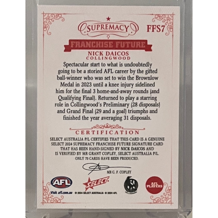 2024 SELECT AFL SUPREMACY Franchise Future Signature Nick Daicos 13/70